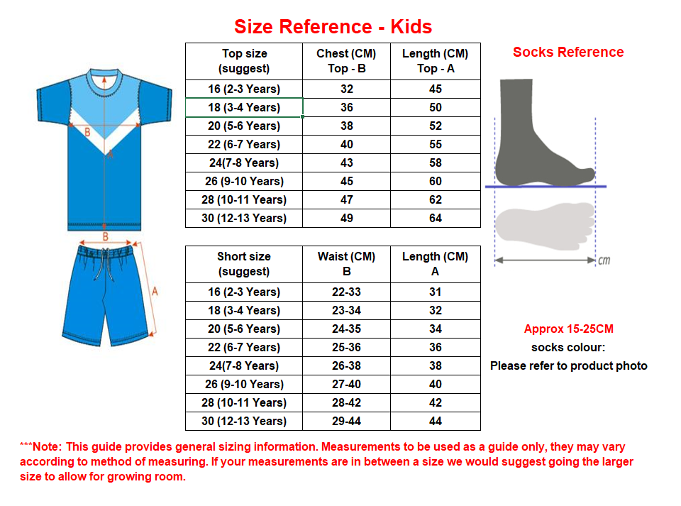All sizes measured in cm.